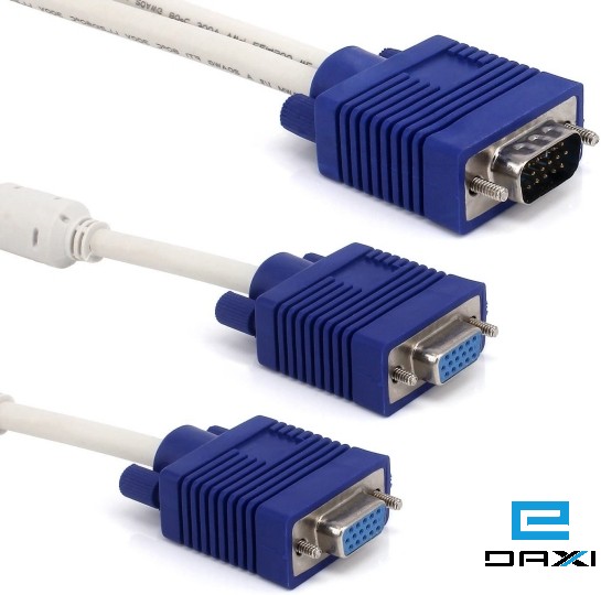 VGA Male to 2 Dual Female Y Adapter Splitter Cable 15 Pin