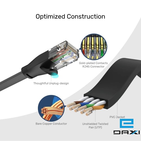 - Made with gold-plated contacts RJ45 connector and bare copper conductor.