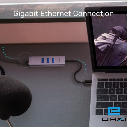 Package Contents: 1 x USB3.0 3-Port + Gigabit Ethernet Aluminium Hub 1 x USB Type-C Adaptor