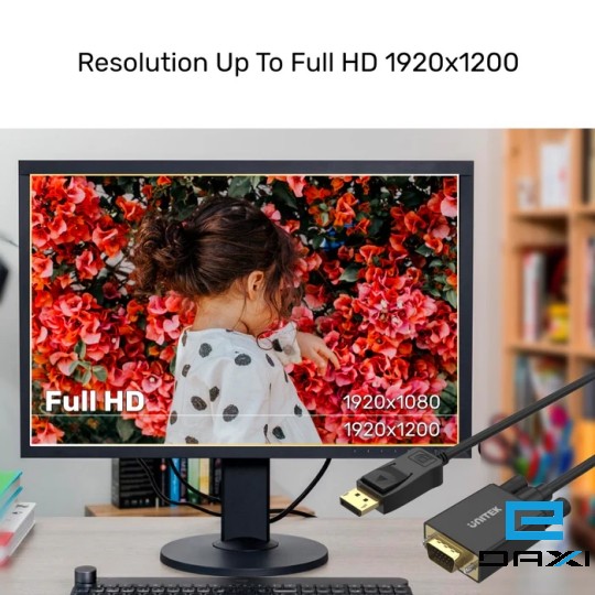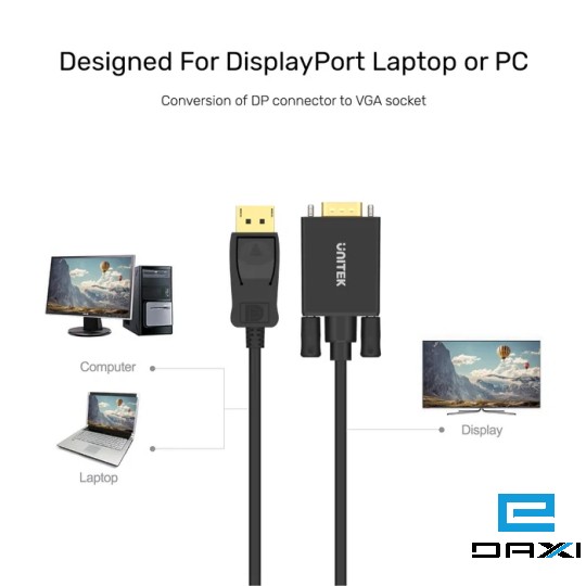 DP-კაბელი Y-5118F,UNITEK 1.8m Display Port Male to VGA Male Adapter
