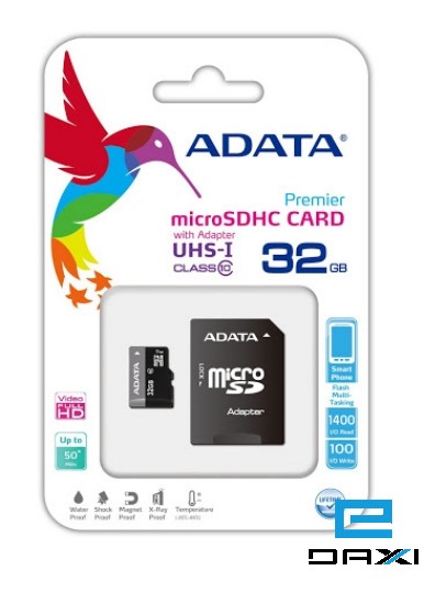 მეხსიერების ბარათი გადამყვანით ADATA 32GB MicroSD Card CL10 with adaptor-Retail packing