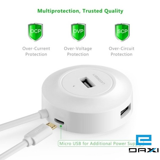 USB ჰაბი, 4 PORTS HUB, UGREEN USB HUB USB 2.0, 1M WHITE 20270