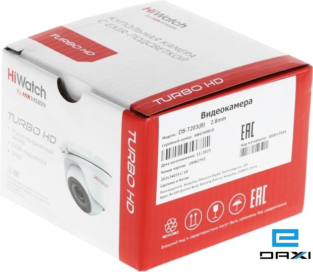 ანალოგური სამეთვალყურეო კამერა , 2MP 2.8mm, Hiwatch DS-T203(B), HD TVI/AHD/CVI/CVBS, Turret, Fix, IR20m,