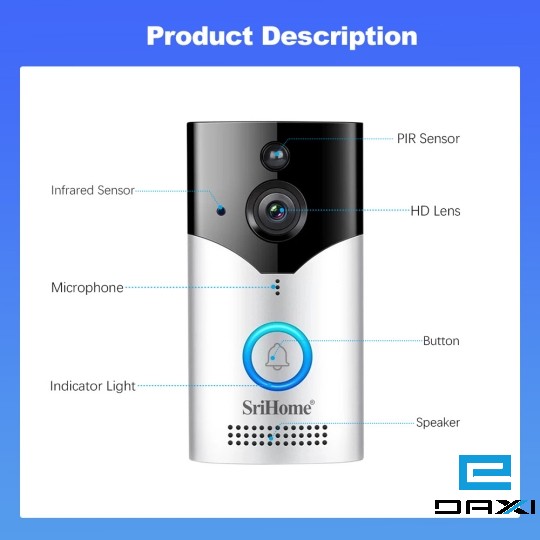 კარის ვიდეო ზარი 4MP Wi-Fi, SriHome DH002