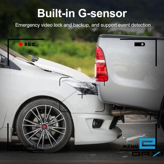 G-sensor: adopts built-in G-sensor, supports lock and backup the recordings when collision occurs, supports event detection