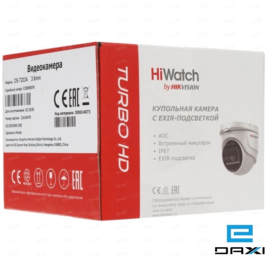 ანალოგური სამეთვალყურეო კამერა მიკროფონით, 2MP 2.8mm, Hiwatch DS-T203A(B), HD TVI/AHD/CVI/CVBS, Turret, Fix, IR20m, Mic