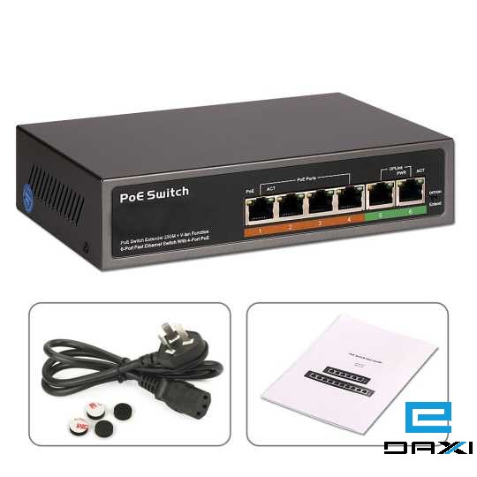 არამართვადი სვიჩი, VDD-X204PI, 6 Ports switch with 4 Ports PoE, 100Mbit each Port