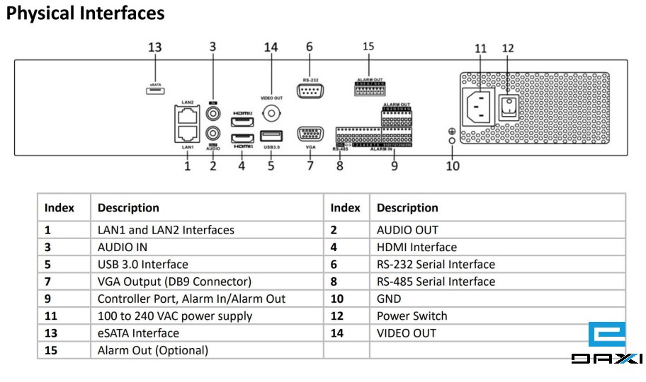- Up to 2-ch@32 MP/2-ch@24 MP/4-ch@12 MP/8-ch@8 MP/16-ch@4 MP/32-ch@1080p decoding capacity