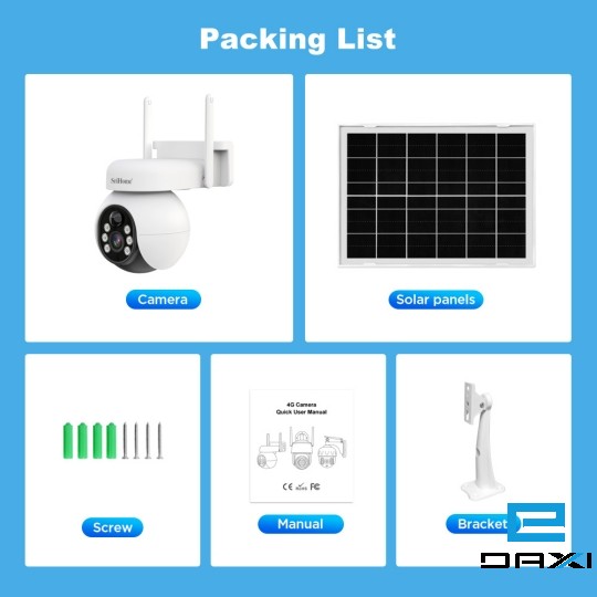 Product type: Battery camera Power interface: Type C DC5V Battery specification: 18650 Battery Pack 4000mA (built-in) Working temperature: Minus 10℃ ~50℃ Waterproof degree: IP65 Working humidity: 10%-90% RH Working power consumption: 1.5~5W(Daytime 1.5W) Standby power consumption: Product size: 150mm*137nn*105mm(L*W*H) Color box size: 241mm*176mm*130mm(L*W*H) Weight: Net Weight 430G, Gross Weight:1250G Accessories: 1*USB cable, 1*Bracket, 1*Instruction manual, Wooden screw (including installation screwdriver), 1*Card pick pin, 1*3W Solar pannel |