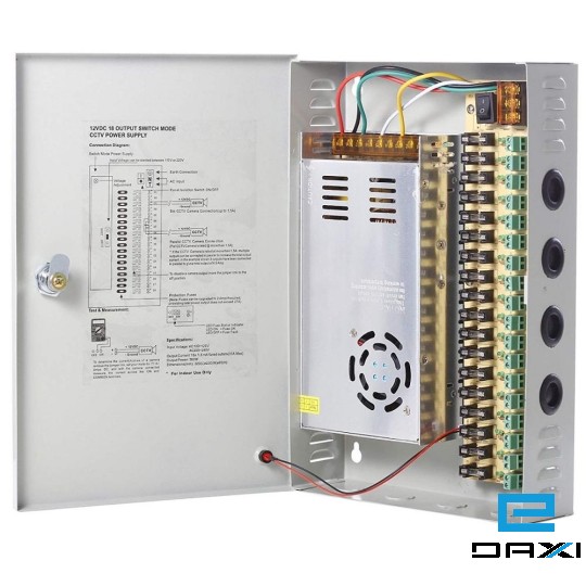 კვების ბლოკი გამანაწილებელი კოლოფით, Power Supply, 18CH, 12V, 30A