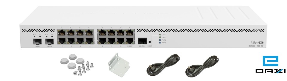 CCR სერიის ახალი როუტერი 4 ბირთვიანი პროცესორით და 4GB ოპერატიული მეხსიერებით. როუტერს გააჩნია 16 ცალი 1Gbps სიჩქარის RJ45 და 2 ცალი 10Gpbs სიჩქარის SFP+ პორტები. შესაძლებელია განთავსდეს საკომუნიკაციო კარადაში, მოყვება ინტეგრირებული 2 კვების ბლოკი, რომელთაგან ერთი არის ძირითადი, ხოლო მეორე სარეზერვო. როუტერის RJ45 პორტები დაყოფილია 2 ჯგუფად (8-8 პორტი) და თითოეული ჯგუფი დაკავშირებულია დამოუკიდებელ სვიჩის ჩიპსეტთან, რომელსაც თავის მხრივ ცენტრალურ პროცესორთან 10Gbps სიჩქარის შეერთება აქვს. ასევე SFP+ პორტები ცალცალკე არის დაკავშირებული ცენტრალურ პროცესორთან 10Gbps-ით. ამგვარი სქემა საგრძნობლად ზრდის მოწყობილობის წარმადობას როგორ სვიჩინგის ასევე როუტინგის მიმართულებით.