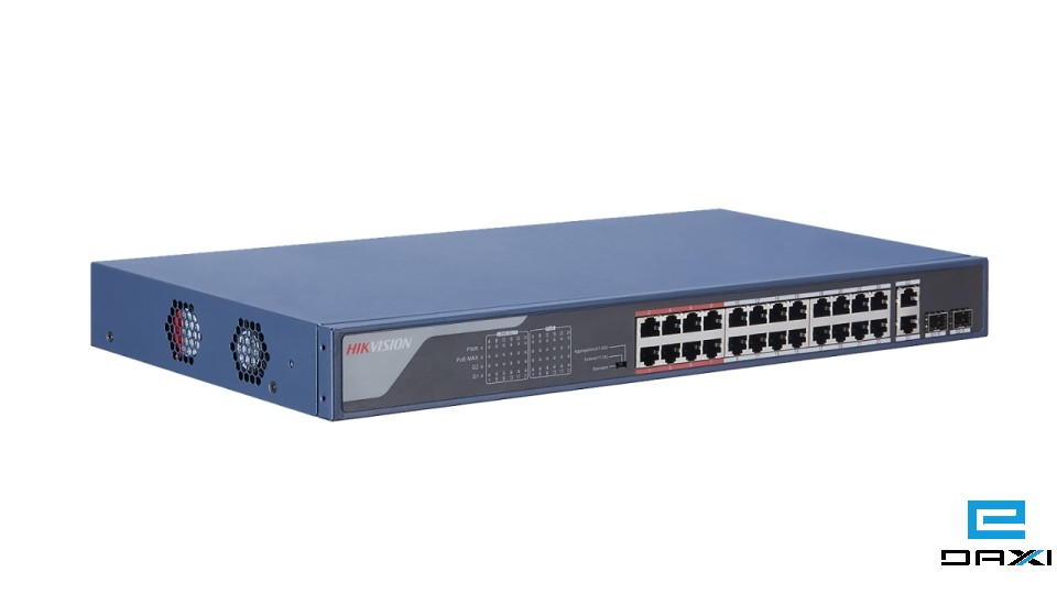 არამართვადი POE სვიჩი,Hikvision DS-3E0326P-E(B) 24 × 10/100 Mbps PoE ports, 2 × Gigabit combos