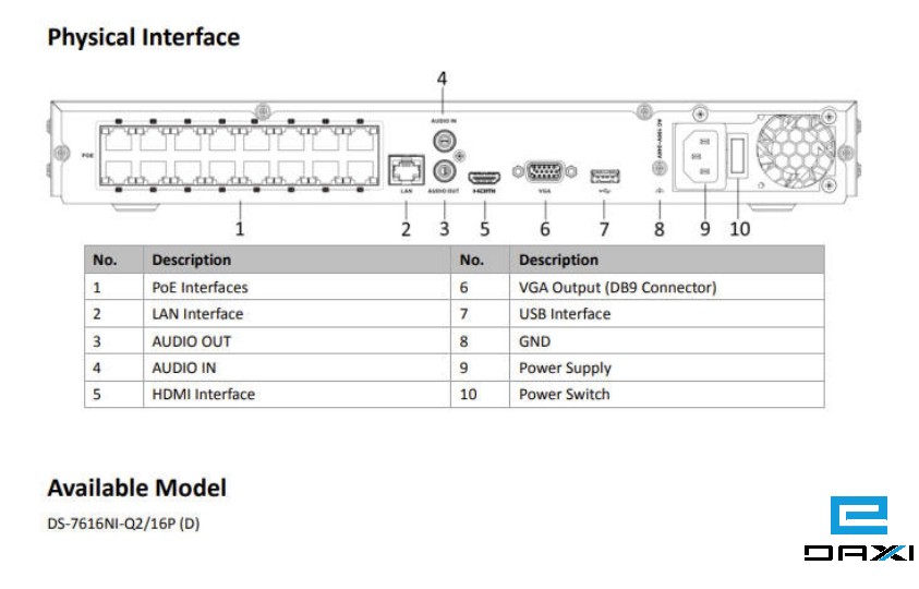 ქსელური ვიდეო ჩამწერი NVR 16CH POE, Hikvision DS-7616NI-Q2/16P(D), 2 SATA, 150W
