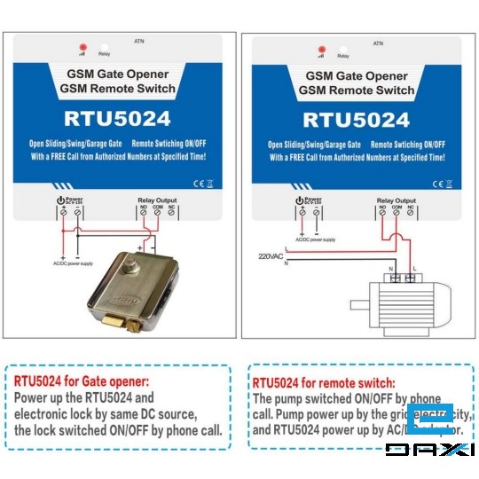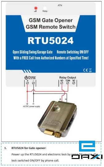 The GSM Gate Opener/Relay Switch RTU5024 is an powerful GSM Relay, it is a very simple device which can be used for authorized door access, controlling gates, switching of remote equipment, car parking systems. Actually the GSM Gate Opener/Relay SwitchRTU5024 can be used in places which require to turn ON/OFF your system, machines, equipment remotely with a FREE call from your mobile phone.