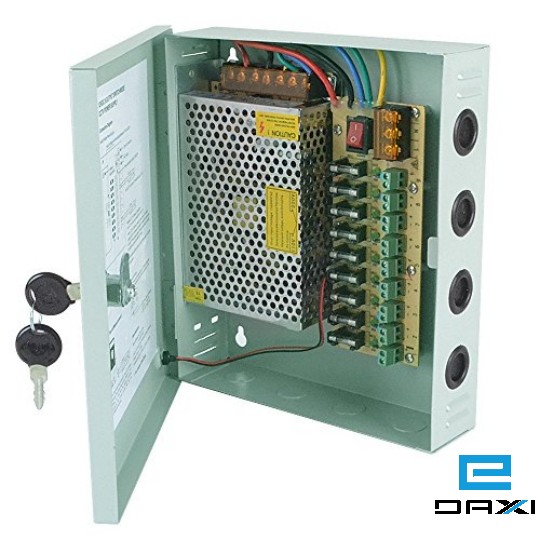 კვების ბლოკი გამანაწილებელი კოლოფით, Power Supply, 9CH, 12V 10A