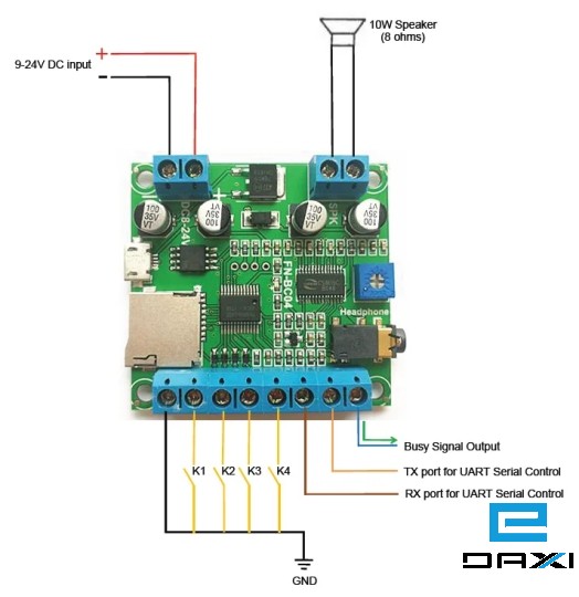 ინდუსტრიული აუდიო პლეერი, FN-BC04 Triggerable MP3 Sound Board with 15W Class D Amplifier