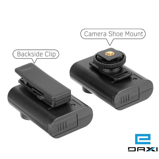 Standard camera shoe mount and backside clip included, which allows you to mount the transmitter and receiver conveniently.