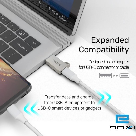 This product is aimed to be an adapter for expanding the compatibility of USB-C connector or cable, including 5Gbps SuperSpeed data sync as well as charging. This adapter is designed with thoughtful keychain which is also an easy-grip design for unplugging, and the zinc-alloy exterior to ensure the strongness and long-lasting usage.