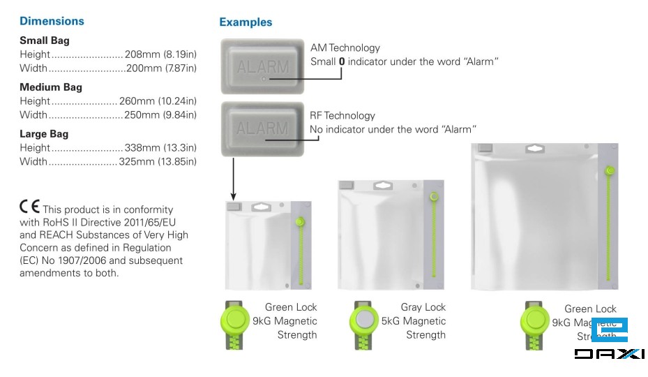 Flexible Safers are available in three sizes and constructed from three clear, strong and lightweight plastics laminated together to form a strong, yet flexible, composite product. It is extremely easy to use and available in various magnetic strengths to work with the full line of Sensormatic magnetic detachers.