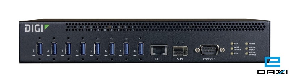 • Digi AnywhereUSB 8 Plus - 8-port USB over IP remote USB 3.1 hub with 10 M/100 M/1 G/10 G Ethernet, 12 VDC, SFP+ module support and optional cellular Digi CORE module