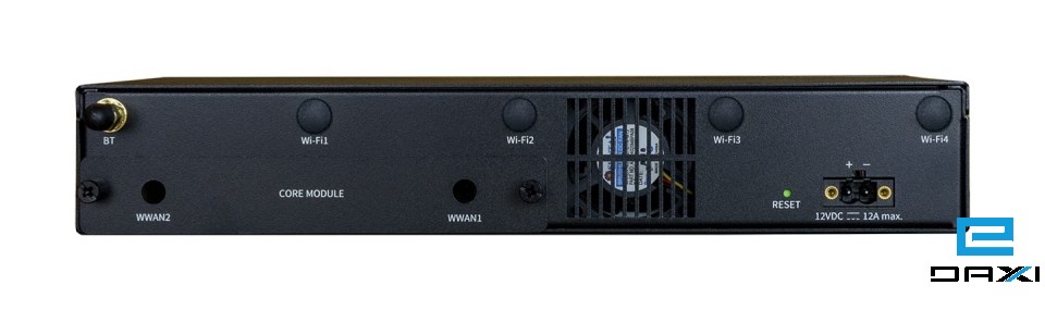 • Status LEDs: Ethernet, SFP+, 8x USB, power, fan, user, 2x WWAN (if CORE module is inserted)