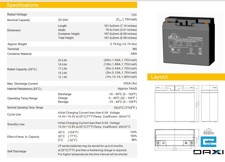 Leoch LP სერიის აკუმულატორების შენახვა შესაძლებელია 6 თვის განმავლობაში 25°C ტემპერატურაზე. 6 თვის შემდგომ საჭიროებს ხელახალ დამუხტვას. მაღალი ტემპერატურის პირობებში აღნიშნული დრო მცირდება.
