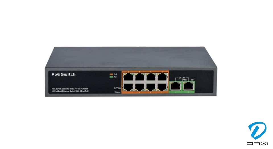 არამართვადი სვიჩი, VDD-X208PI, 10 Ports switch with 8 Ports PoE, 100Mbit each Port