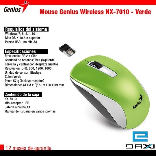 თაგვი, NX-7005, Genius, Green, Wireless Mouse
