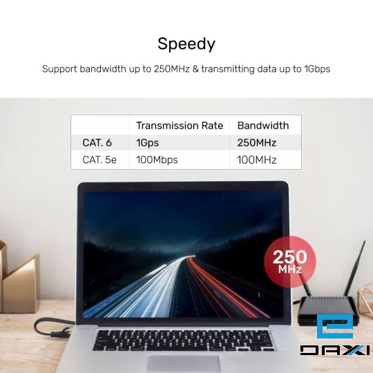 - Cat 6 standard allows sending up to 1 Gigabit data per second under the 250MHz bandwidth, provides speedy and stable signal connection.