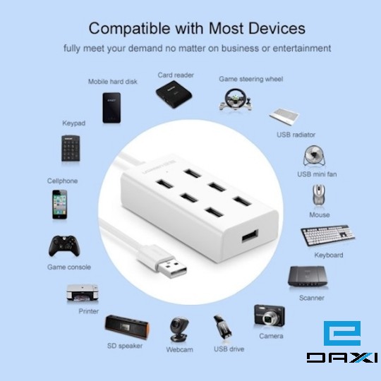 USB ჰაბი, UGREEN, 7 Ports and Connectors High Speed 480 Mbps Usb 2.0 Hub Splitter 30370, USB HUB