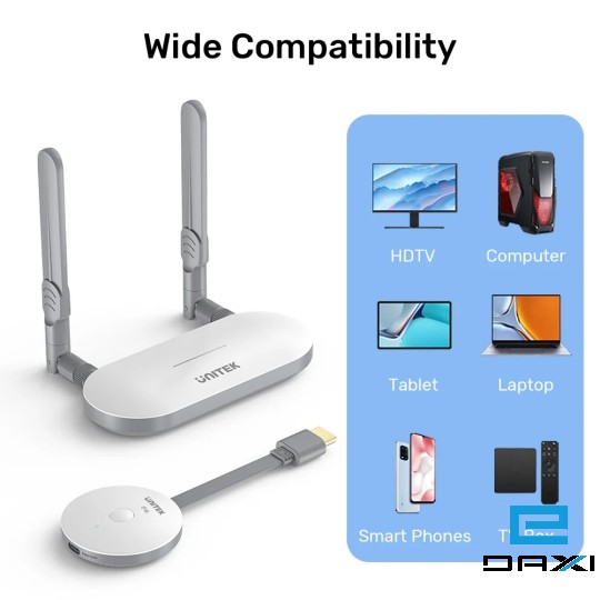 UNITEK V1183A არის Full HD HDMI გადამცემის და მიმღების კომპლექტი, რომელიც უზრუნველყოფს ვიდეოს უკაბელოდ გადაცემას 50 მ-მდე მანძილზე, მარტივი USB/HDMI კავშირზე და სტაბილურ სიგნალზე.