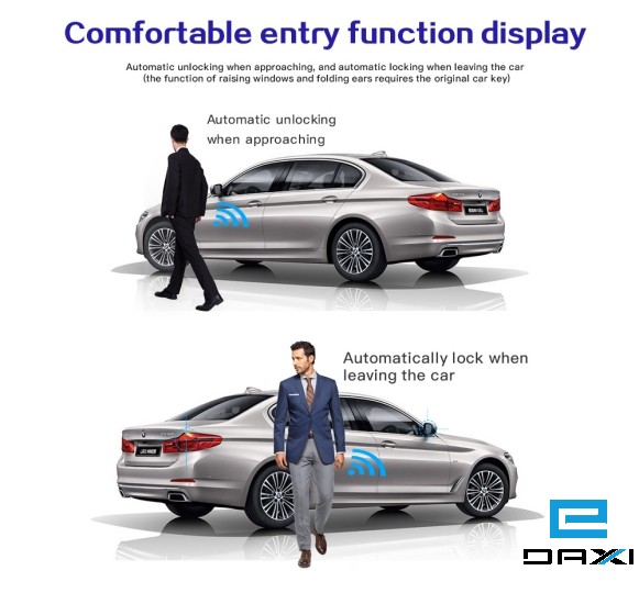 კარის დაბლოკვა და განბლოკვა საბარგულის გახსნა უგასაღებო შესვლა (Keyless / Comfort Entry) — Bluetooth-ის საშუალებით ფანჯრების ავტომატური დახურვა (საჭიროა ავტომობილს ჰქონდეს ეს ფუნქცია) თარიღისა და დროის ჩვენება ეკრანზე გასაღების საპოვნელი ნომერი (Anti-lost Number) გასაღების პოვნა (Find My) — გასაღების დაკარგვის შემთხვევაში მისი ადგილმდებარეობის დადგენა აპლიკაციით ლოგოს მორგება Android აპლიკაციით