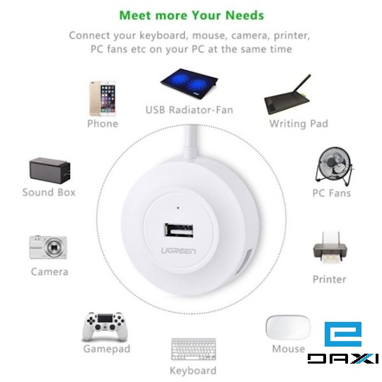 USB ჰაბი, 4 PORTS HUB, UGREEN USB HUB USB 2.0, 1M WHITE 20270