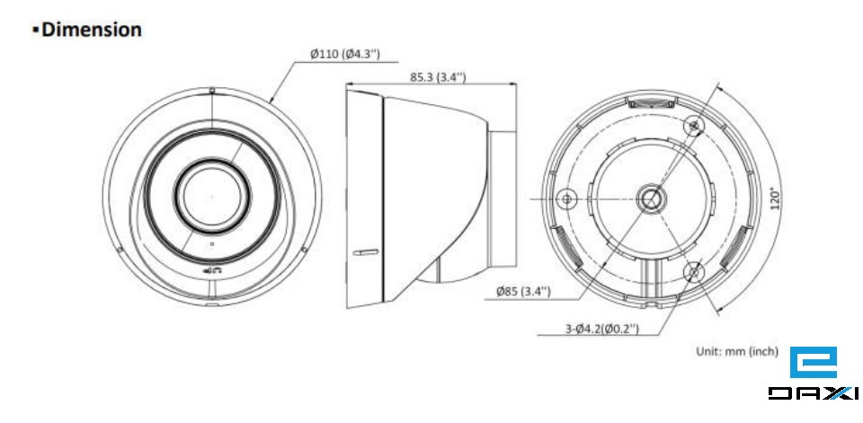 ქსელური სამეთვალყურეო კამერა, 4MP IP 2.8mm, Hikvision DS-2CD1343G0-I, Fixed Turret Network Camera,Indoor