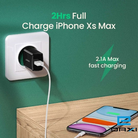 USB დამტენი, ED011 UGREEN, 5V 2.1A USB Wall Charger (Black)