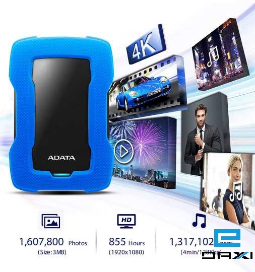 USB მყარი სიდკი, 1TB, A-DATA, AHD330-1TU31-CBL, HD330-1TB, USB 3.1-COLOR BOX, BLUE