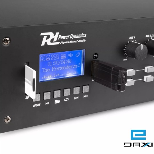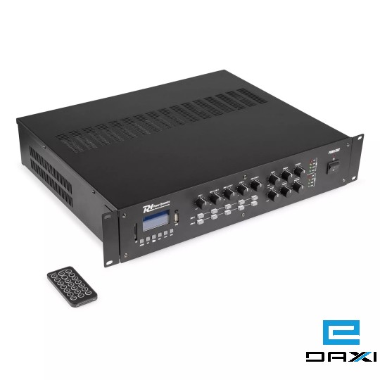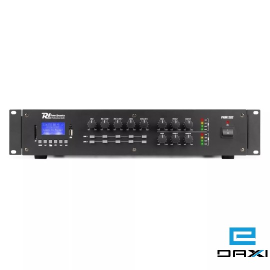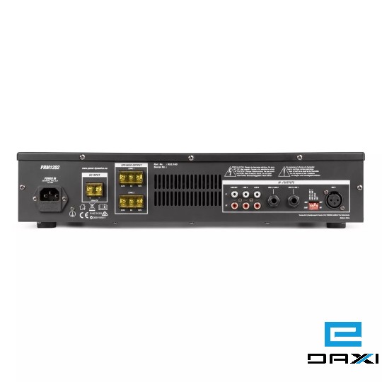 The PRM1202 is a rack-mountable amplifier with 2 separate 120W outputs that can either be used as 100V amplifier or as a standard low-impedance amplifier. This 2 zone amplifier is designed for multi-room systems requiring different audio sources. It's equipped with BT receiver and USB/SD ports for MP3 playback including a bright LCD display with ID3 Tag. The PRM1202 is provided with switchable XLR inputs with 24V Phantom Power, especially for paging and condenser microphones. Especially designed for applications such as paging, announcements, intercommunications, background music, broadcasting in industrial plants etc.