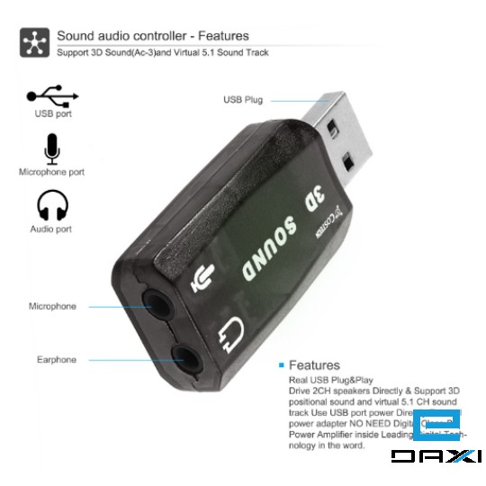 USB ხმის ადაპტერი KDUSB-SC, USB Sound Card 2 Chanel