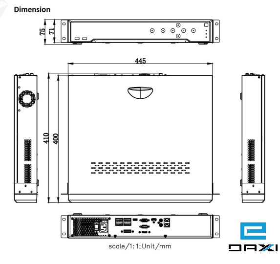 • Dimension (W × D × H)445 × 400 ×71 mm ( 17.5"× 15.7" × 2.8")