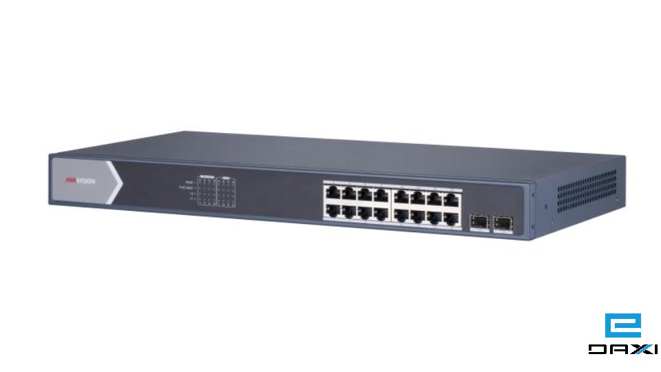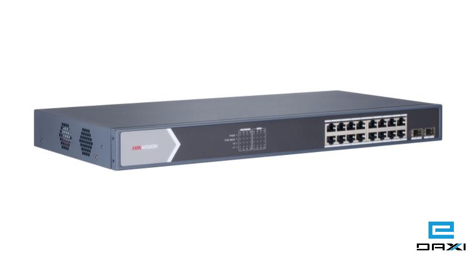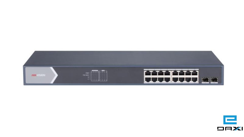 არამართვადი POE სვიჩი 16 Port, Hikvision DS-3E0518P-E/M, 16 × Gigabit PoE ports, 2 × Gigabit SFP fiber optical ports