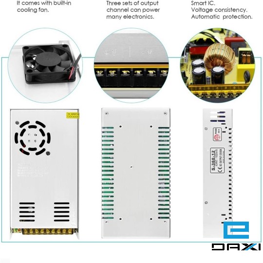 კვების ბლოკი 12V 30A, 220AC-12DC, S-360-12