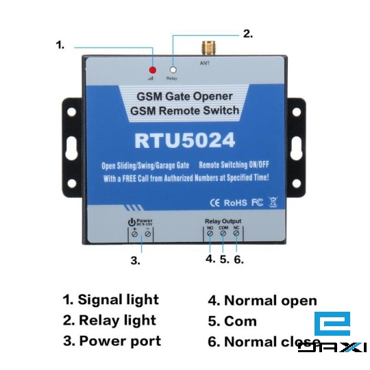 The GSM Gate Opener/Relay Switch RTU5024 is an powerful GSM Relay, it is a very simple device which can be used for authorized door access, controlling gates, switching of remote equipment, car parking systems. Actually the GSM Gate Opener/Relay SwitchRTU5024 can be used in places which require to turn ON/OFF your system, machines, equipment remotely with a FREE call from your mobile phone.