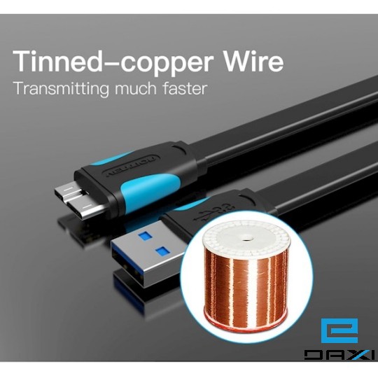 USB კაბელი, 1,5M VAS-A12-B150, Flat USB3.0 A Male to Micro B Male Cable Black