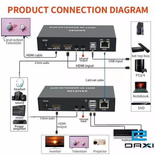 It not only breaks the limitation of the HDMI cable transmission length, but also CAT-5e/6 has more flexibility and convenience in cable construction.