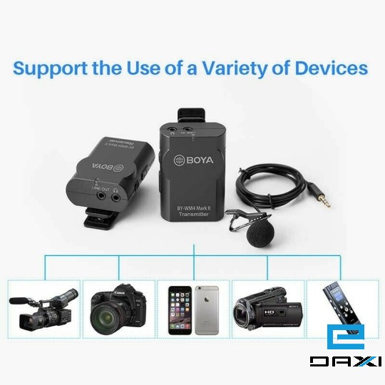 Digital wireless microphone system(one transmitters + one receiver), compatible with smartphones, DSLR cameras, consumer camcorders, PCs, etc.