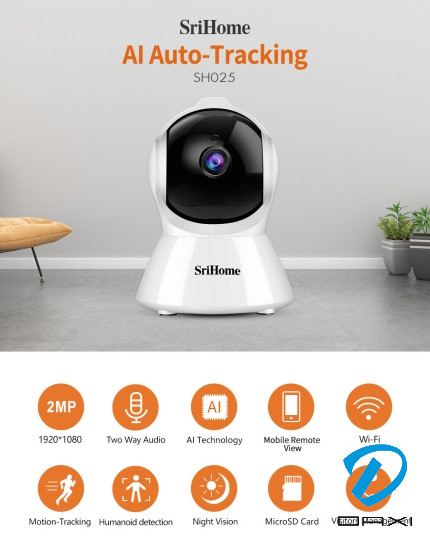 სამეთვალყურეო კამერა, SriHome SH025, 3MP, WiFi, 3.6mm, White, Indoor